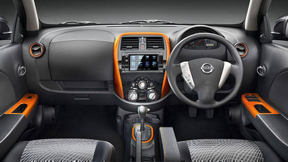 The Nissan Micra Fashion Edition gets orange accents for the interiors.
