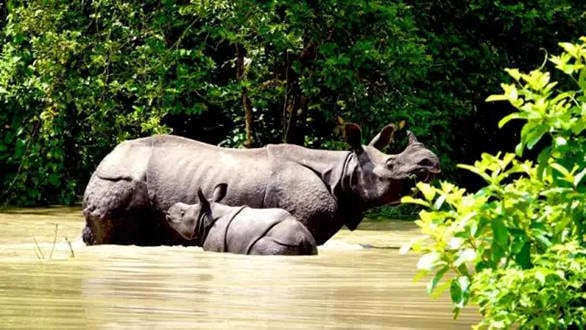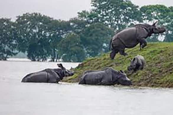 The floods in Assam in July, also submerged vast areas of the Kaziranga National Park, and resulted in lots of wildlife coming out onto National Highway 37, which passes through this rich wildlife habitat. A video of an exhausted rhino resting on the side of highway, while vehicles drive past has gone viral. Fortunately the forest department staff was at the location to direct the vehicles through and eventually they also guided the one horned rhinoceros back into the safety of Kaziranga National Park.