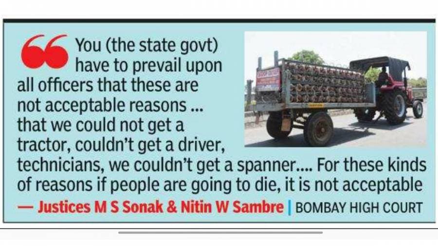 At the time of writing this, over 83 persons had died at the Goa Medical College due to interrupted oxygen supply. On 13th May, the Government of Goa told the Bombay High Court that the delay in replacing oxygen cylinders on the 12th (15 died that night) was because they did not have an expert tractor driver to reverse it into a small pathway where the cylinders were to be unloaded! The court in its scathing response said, "These are not acceptable reasons, that we couldn't get a driver, technicians, we couldn't get a spanner "