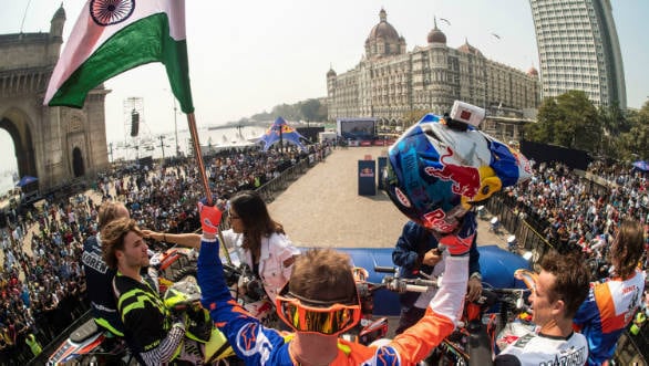 The Red Bull FMX Jam was held today at the Gateway of India where Mumbaikars were left amazed by some spectacular, freestyle motorcycle stunts by Red Bull athletes. Robbie Maddison, Alexey Kolesnikov and Tom Pages were undoubtedly the stars of the show, enthralling everyone assembled at one of Mumbai's most iconic tourist spots. The trio were joined by other Red Bull freestyle motorcycle athletes- Martin Koren, Radek Bilek and Julien Vanstippen.