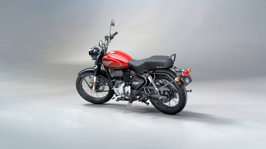 The Bullet 350 comes powered by a 349cc, single-cylinder, air/oil-cooled J-series engine, which also powers the other Royal Enfield motorcycles, such as the Meteor 350, Classic 350, and Hunter 350. Paired with a five-speed gearbox, this motor makes 20.2PS and 27Nm of torque.