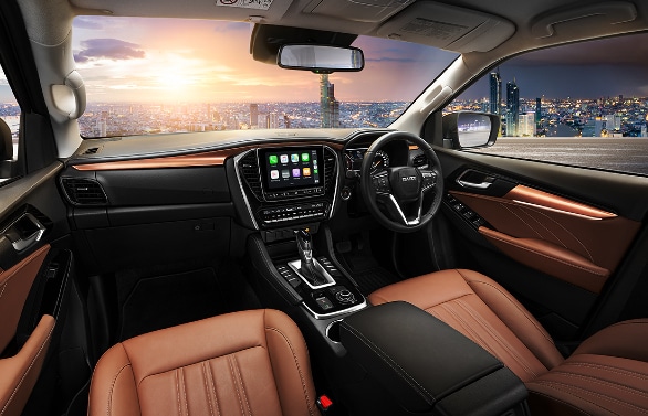 On the inside, the MU-X is largely similar to the new D-Max, with the same flat dash face and a clean array of buttons on the centre console. The large 9-inch touchscreen and 4.2-inch MID continue as well as the new steering wheel. The MU-X gets an electronic hand-brake and a new placement for the drive-mode selector on the centre stack. Other feature highlights are keyless entry and go, ambient lighting, 8-way adjustable powered-driver seat, air vents for the second and third row, dual-zone climate control, a PM 2.5 air filter and a powered tailgate. Safety features amount to seven airbags, traction control, hill start assist, hill descent control, ABS, ESP and so on.