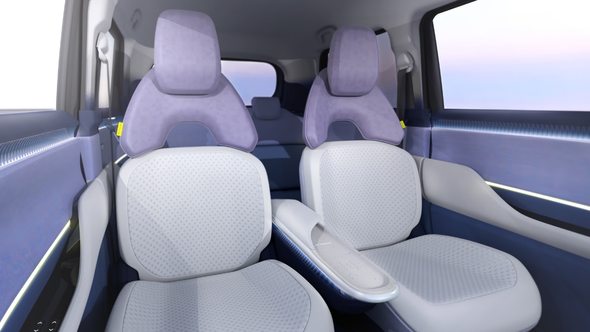 The previews show a minimalist, yet vibrant functional cabin with a floating centre console, split-type front seats, dual screens for instrument cluster and infotainment, and an upright, city-friendly seating position.