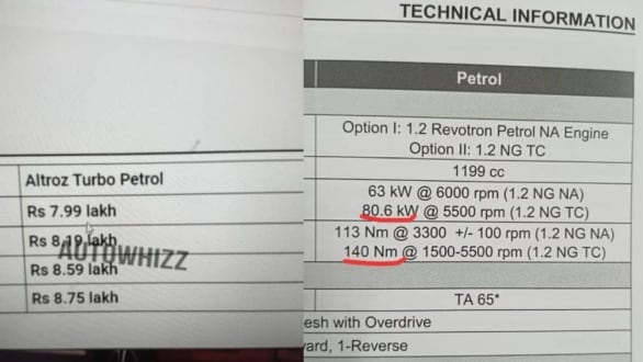 A leaked document on the internet has revealed engine details and prices of the upcoming turbo-petrol variant of the Tata Altroz. This seems in line with earlier reports of Tata Motors planning a festive season launch for this variant of the Altroz.
