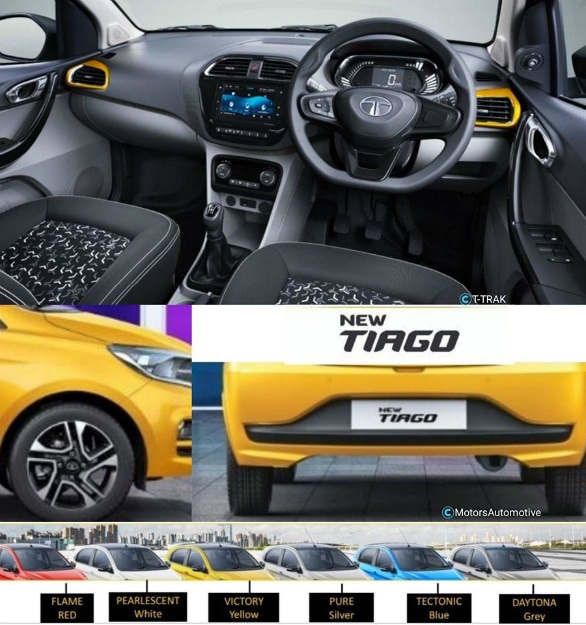 The pictures show that the Tiago hatchback gets a new spoke, flat-bottomed steering wheel, a new pattern for its fabric seats, gloss black accents across the dash, chrome door handles and colour co-ordinated interior accents. Continuing on is the touchscreen infotainment system and the digital instrument cluster. The hatchback will be available in six colours: Flame Red, Pearlescent White, Victory Yellow, Pure Silver, Tectonic Blue, and Daytona Grey. Also seen in the pictures are some of the changes to the Tiago's styling, like the grey inserts on the rear bumper and the new headlamps and grille styled after the Altroz.