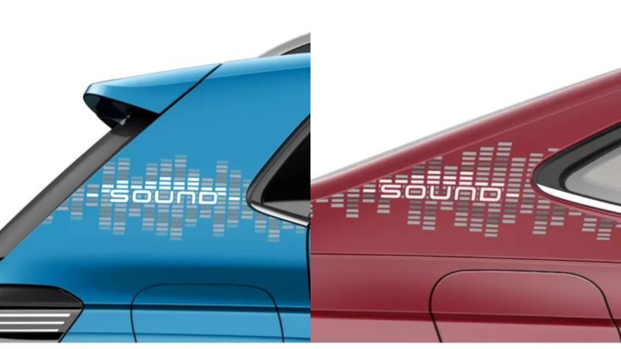 On the exterior, both the Taigun and Virtus have 'Sound' badging decals on the B- and C-pillars. The Taigun Sound Edition also has a contrasting white roof and ORVM caps as an option.