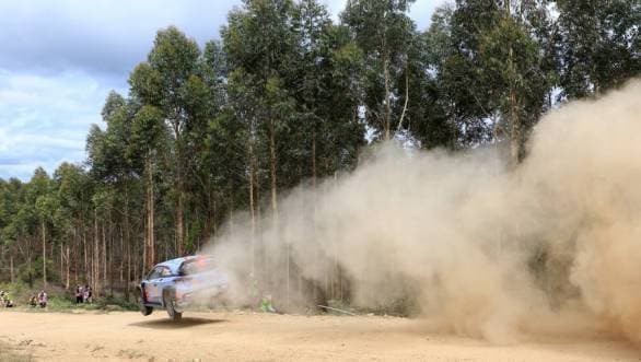 One of the Hyundai WRC machines leaving a blaze of dust behind it at Shakedown at Rally Australia! It's gone by too fast for us to tell who it was. But there's a chance it was Thierry Neuville who was the fastest man at the Shakedown!