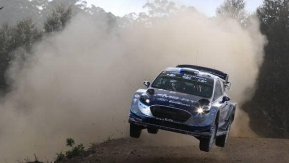 Ott Tanak and Martin Jarveoja yumping their way through the Shakedown at Kennards Hire Rally Australia 2017. The Estonian driver has won Rally Sardinia and Rally Germany this year, and will leave MSport for Toyota Gazoo Racing in 2018.