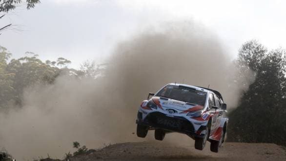 Finnish driver Esapekka Lappi and co-driver Janne Ferm in their WRC Yaris at the Shakedown at Rally Australia.