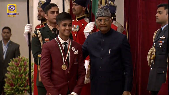 Yash Aradhya with the president of India, Ram Nath Kovind.