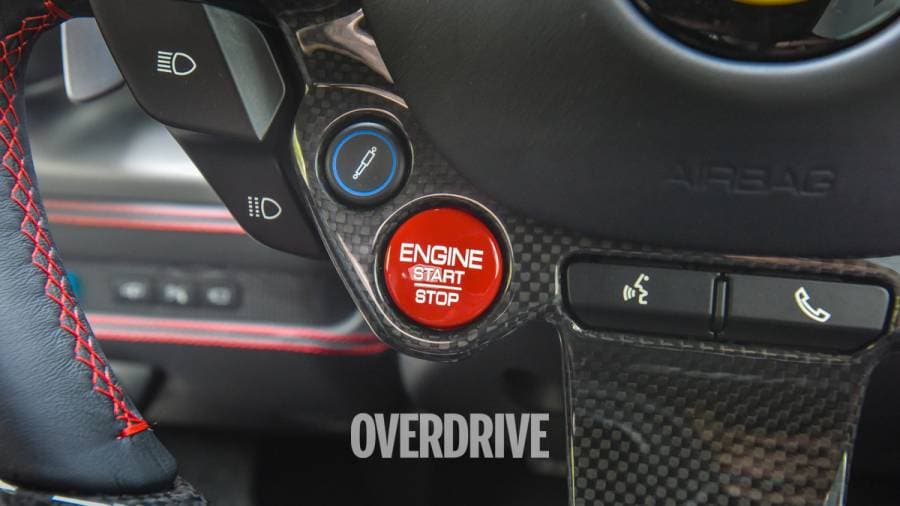 Thumbing the red starter button on the steering wheel can never get old, and your reward is a relatively low-volume bark as the engine fires into life, which will be appreciated on pre-dawn startups but not so much when putting on a show is required. The exhaust is valved but there's no manual control for it, except your right foot. Cross 4,000 revs and you'll understand why Ferrari makes a big deal of the added volume and higher frequencies the tweaks bring. It's like turning on the amplifier and sliding the toggles at either end of the spectrum up to the max.