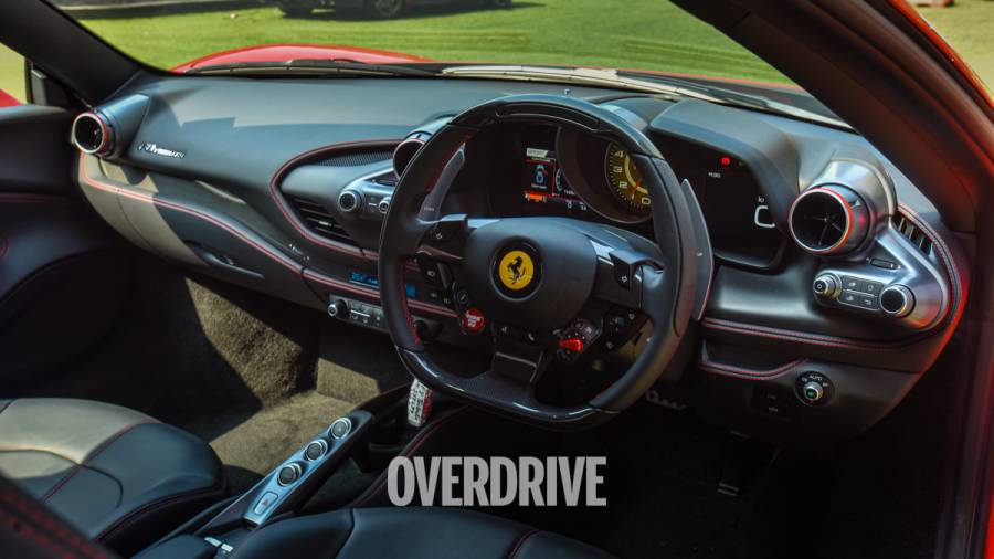 The brakes, cross drilled 398mm rotors up front and 360mm at the rear, don't need to be massive considering the increased cooling efficiency and the F8's positively lightweight 1,435kg kerb figure, weren't really tested on our short spin but what's immediately satisfying is the reassuring weight behind the pedal that makes modulating them at city speeds very, very easy. Even the steering, quite quick considering the turns from lock to lock, isn't so hyper alert that you're constantly sawing at it to go straight. It gives you an inkling as to how confidence inspiring it'd be at the limit, even if you didn't read the brochure explaining what it is the latest generation of Ferrari electronics do for you.