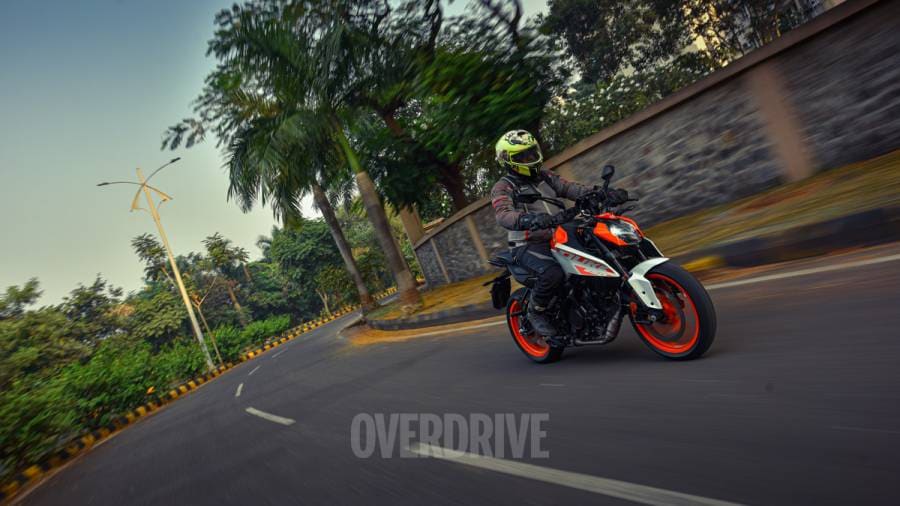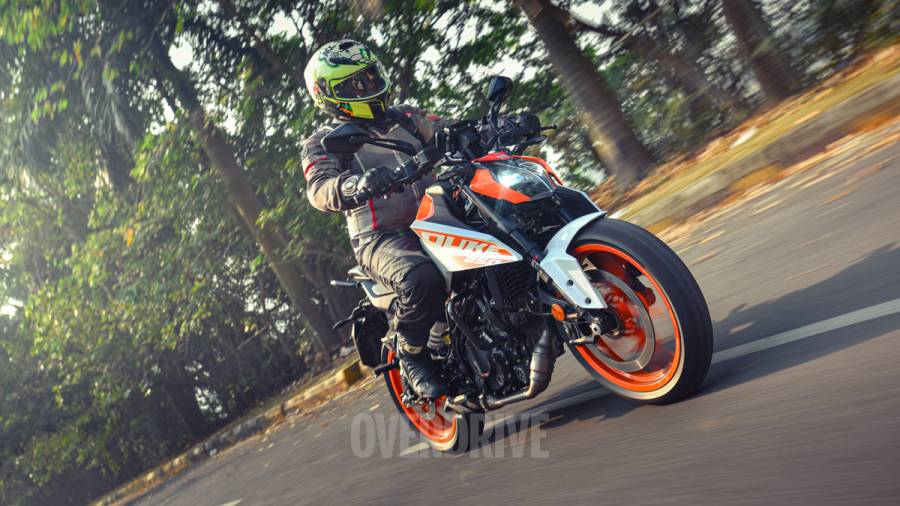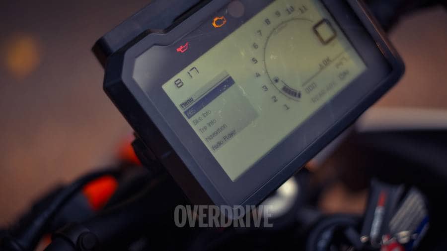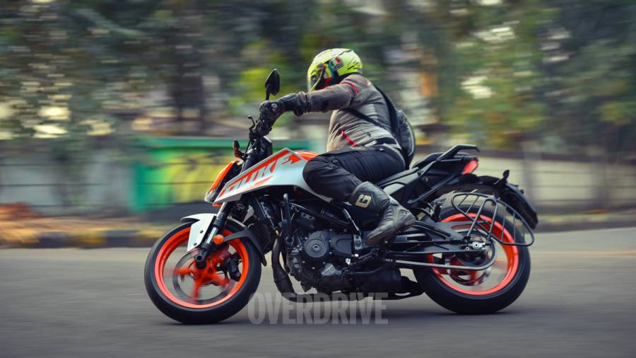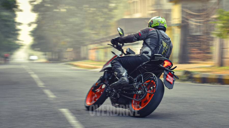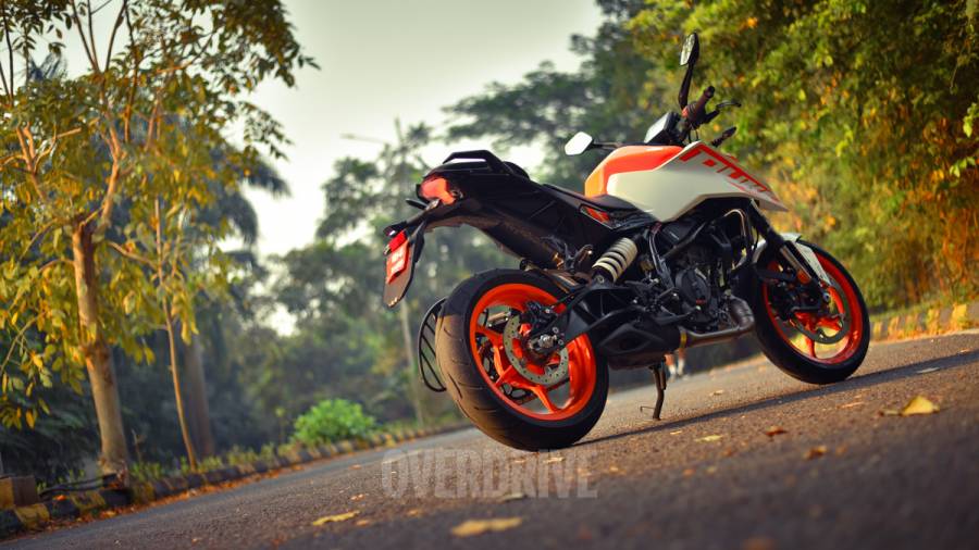 The MRF tyres held up nicely in the dry but let's just say that your desire for better running shoes will increase in tandem with your will to push this bike further to its limits, because hammering up and down the slick gearbox with the crisp quickshifter while taking on corners at speed, this KTM does loose a bit of its composure. And, if that's not your cup of tea, then you'll also be happy to know that it manages to clear every ungodly speedbreaker a city like Mumbai can throw at you while the clutch lever remains light and a treat to use in heavy traffic.