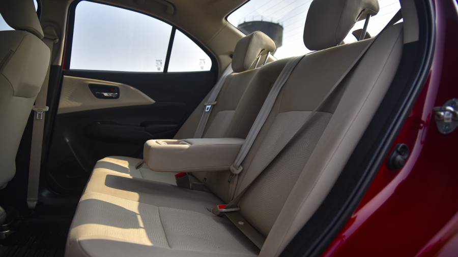 The seats themselves too are fairly comfortable. The flat bench means three abreast will be easier to fit, although this space is best for two. Thigh support is alright and the seatback is reclined to a reasonable angle as well. The headlining has a small scoop to it but those closer to six feet will find it a bit tight, although legroom is fairly generous for a sub-4m vehicle. A thoughtful touch is that the seatback extends right to the doors, as in some luxury cars.