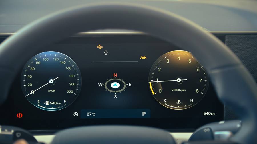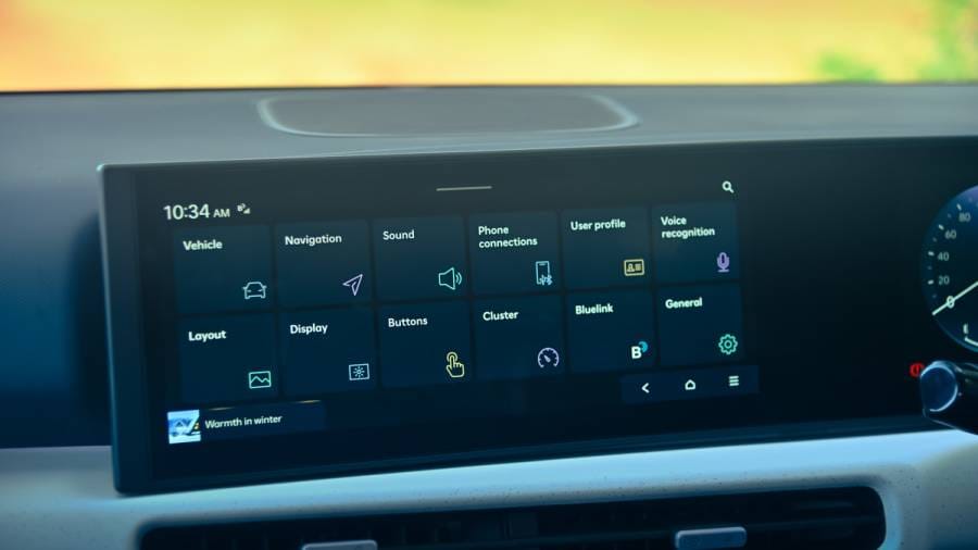 The curved panel fits right into this theme with its larger 12.3-inch screens. They now get Hyundai's newest interface. You have a fully digital instrument cluster now. It's easy to read and navigate through menus, with large fonts and fluid graphics.