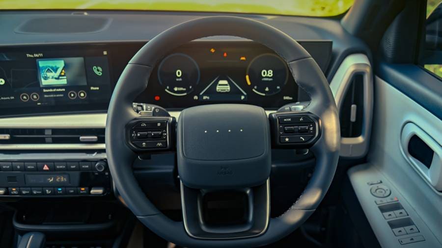 The new steering wheel deserves a mention. You get the Morse code Hyundai logo now, and the size and shape of the wheel make it easy to handle. The great sense of tactility continues with the buttons and metallic paddles here.