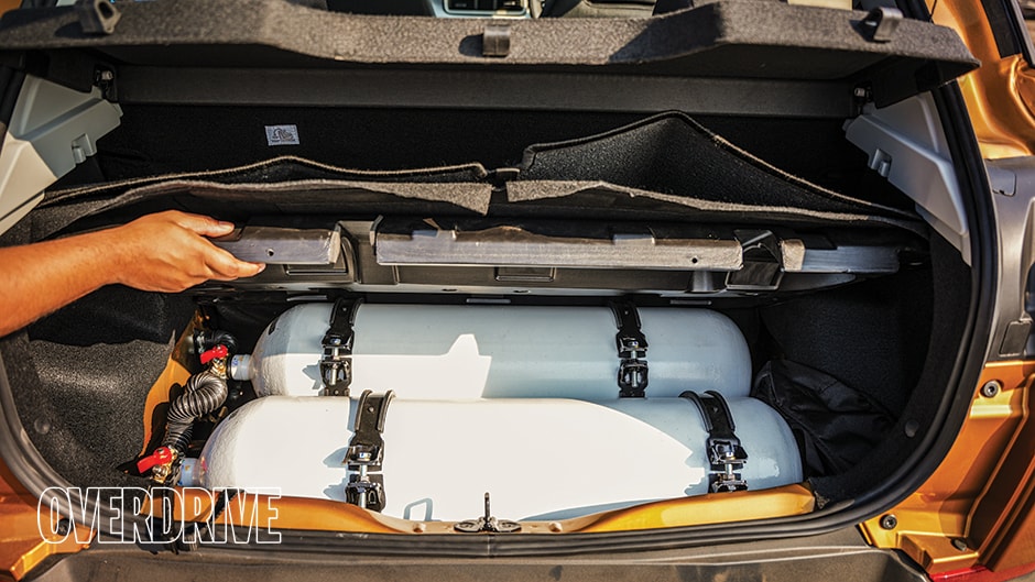 In some ways, it's easier to access the 210l boot in the CNG version, given the flat lip. With the twin-cylinder technology that you have also seen in the Nexon and Altroz, there's still enough space for a large suitcase here. You also do not have to forgo a spare wheel.