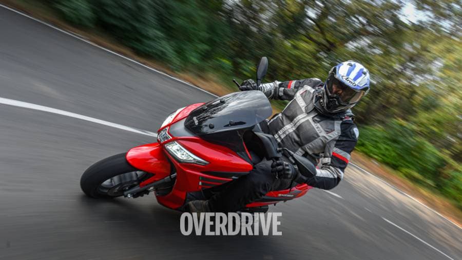 The SXR 160 isn't as easy to flick as the SR due to the tweaked rake angle and also the heft especially at the front but even then the scooter is quite easy to manoeuvre around.