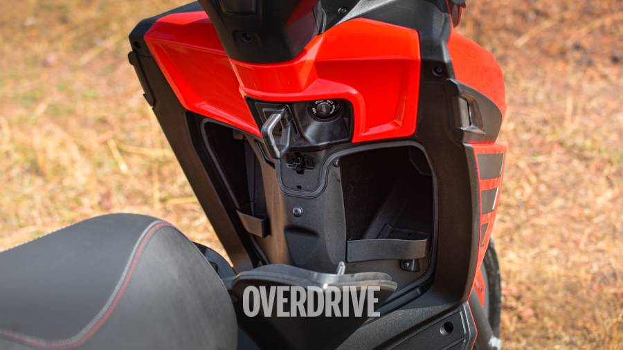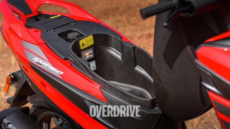 The under-seat storage of the SXR 160 is decent to accommodate a medium-sized helmet