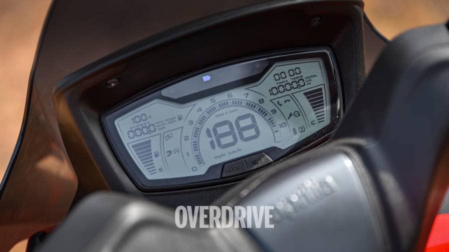 The all-digital LCD instrumentation on the SR 160 offers a ton of info on the distance to empty, battery voltage, instant fuel efficiency, engine oil temperature and trip readings apart from the other essentials. There's also an optional BT connectivity.