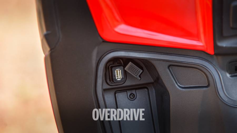 In terms of practicality, the front apron has a provision to store your smartphone which can also be charged via USB along with space to keep your nicknacks. The under-seat storage is decent to hold a medium-sized helmet.
