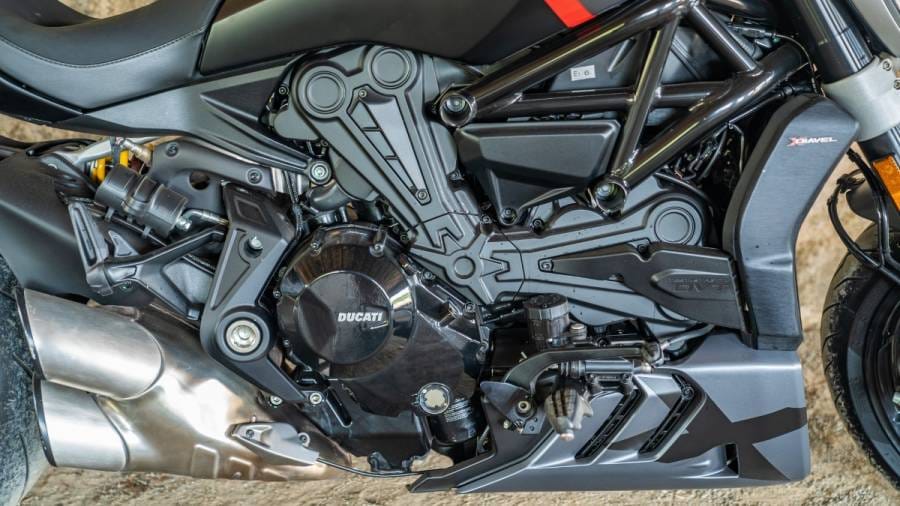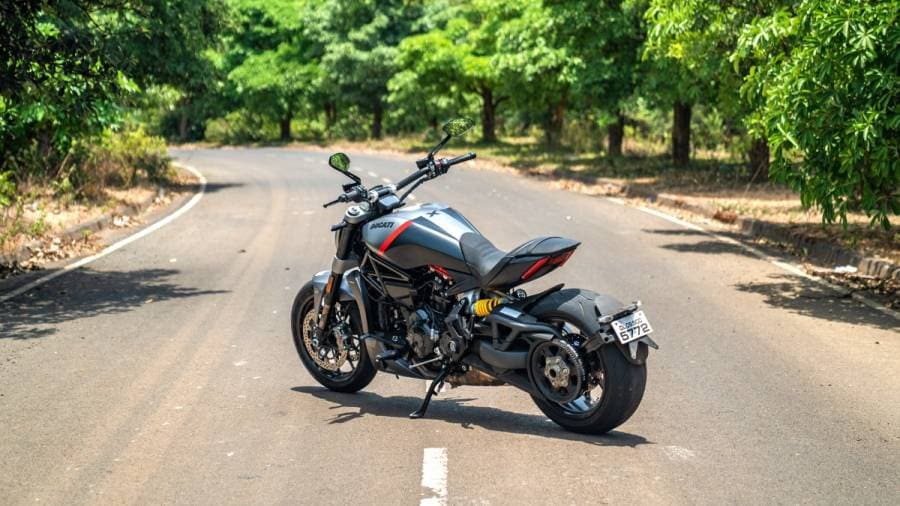 The all three versions of the XDiavel including this Black Star model come powered by Ducati's brilliant 1262cc, liquid-cooled Testastretta DVT V2. It puts down a mammoth 162PS of max power and 127Nm of torque. It's an absolute beast. To give you some perspective, the latest power cruiser from Harley-Davidson, the Sportster S, the latest 1,252cc Revolution Max V-twin in that bike makes a max 120Ps and 125Nm. It weighs almost the same but feels nowhere close to matching the Ducati in terms of raw acceleration and they're leagues apart in terms of handling, but I'll save all that for another time.