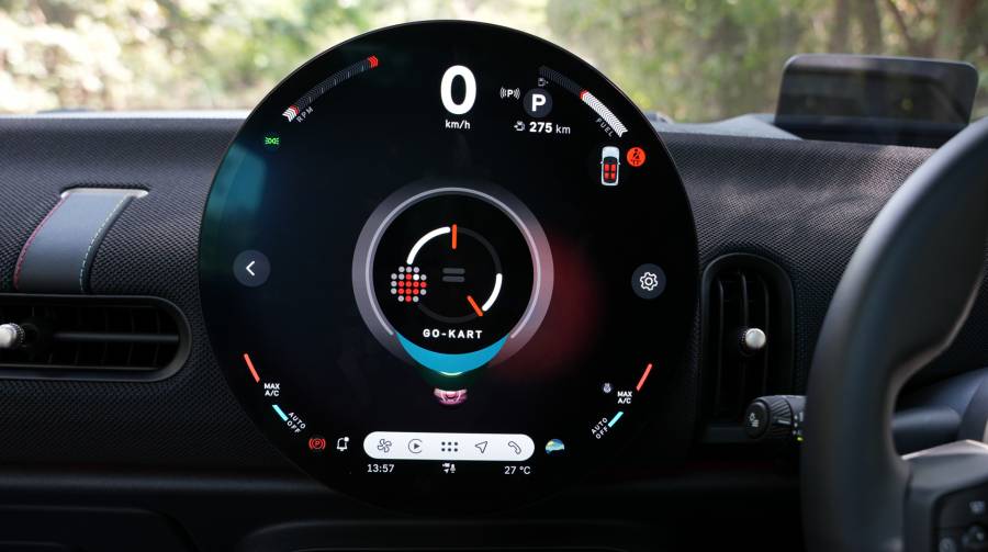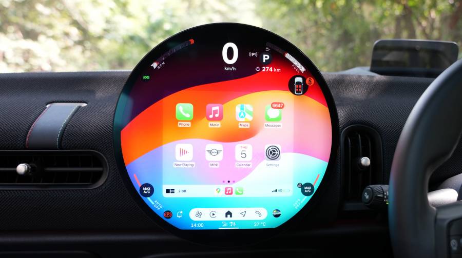 Getting inside might not be the easiest thing I've ever done but once you are on the inside the centre screen will leave you absolutely bamboozled. Minimalism is the current theme and nothing can be more minimal than this! This stunning 9.4-inch OLED centre touchscreen serves as your infotainment as well as your instrument cluster. There's too much going on in this screen so it could be confusing to use at first but one could easily find their way after a few days of usage. It does support wireless Android Auto and Apple CarPlay but that only occupies the vast majority of the centre of the circular screen so that could be a bit off-putting. Also having to constantly look in the middle to check how fast you're going also gets tedious but Mini has given this a head-up display so that's no issue.