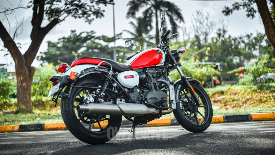 As you would expect, the SRC 500 is an easy-rider. Loves to cruise, isn't a fan of downright speed. At low speed the suspension at the front manages things well but things can get a bit lumpy with the stiff rear setup. At higher speeds the suspension feels a lot better, but feedback from the front isn't the best. Long sweeping bends at 70-80kmph feel just about manageable, but any faster and the Maxxis tyres don't feel up for it.