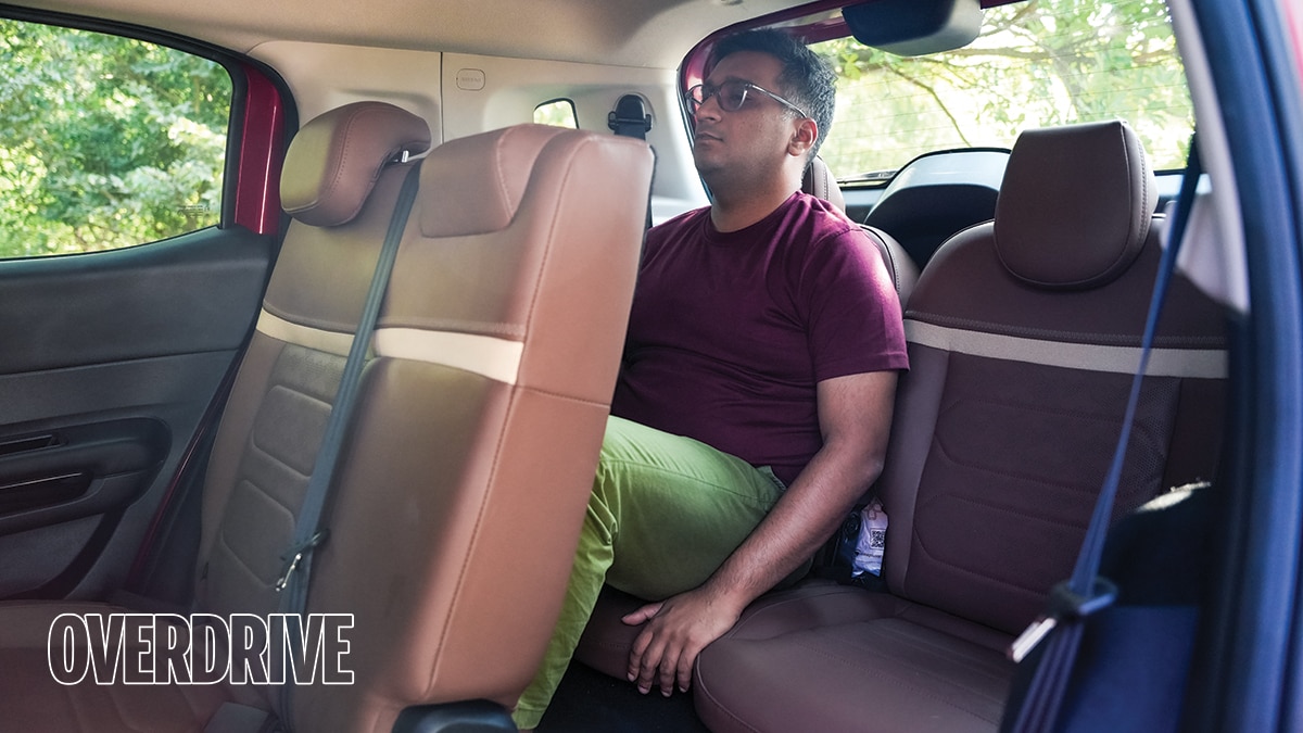Like the front, the seat here is supportive and well padded, and the leather upholstery gives this space a good feel too. But the high central tunnel will make things uncomfortable for a middle passenger. Although the door trim remains quite plasticky and not like the one in front. An odd miss is that there is no centre armrest. But the roof-mounted blowers, along with the common rear vents, do a great job of cooling this part of the cabin. You also have helpful Type-C chargers here.