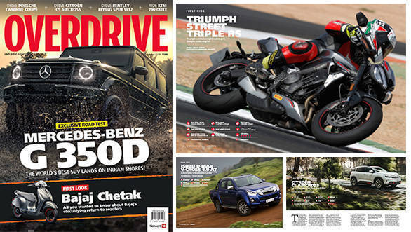 In this month's issue, we bring you exclusive road tests of the Mercedes-Benz G 350d SUV, Maruti Suzuki S-Presso, Citroen C5 Aircross; Bentley Flying Spur W12; Porsche Cayenne Coupé; Isuzu D-Max V-Cross; Skoda Kodiaq Scout; KTM 790 Duke, Triumph Street Triple RS; Features - Simple Tech - All About Electric Motors; BMW Motorrad GS Trophy.